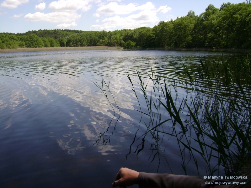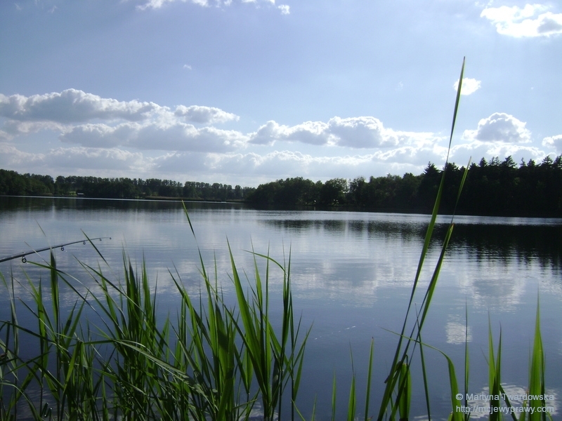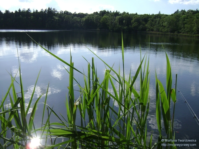 Nic to, w przerwach między zarzucaniem wędką rozglądałam się wokół i dosłownie rozpływałam: i w zachwycie nad jeziorem (które jest niesamowicie urokliwe) i w dosłownym znaczeniu, bowiem zaczynało być po prostu upalnie: chmury się rozwiały, a nas niemiłosiernie prażyło słonko ![]()