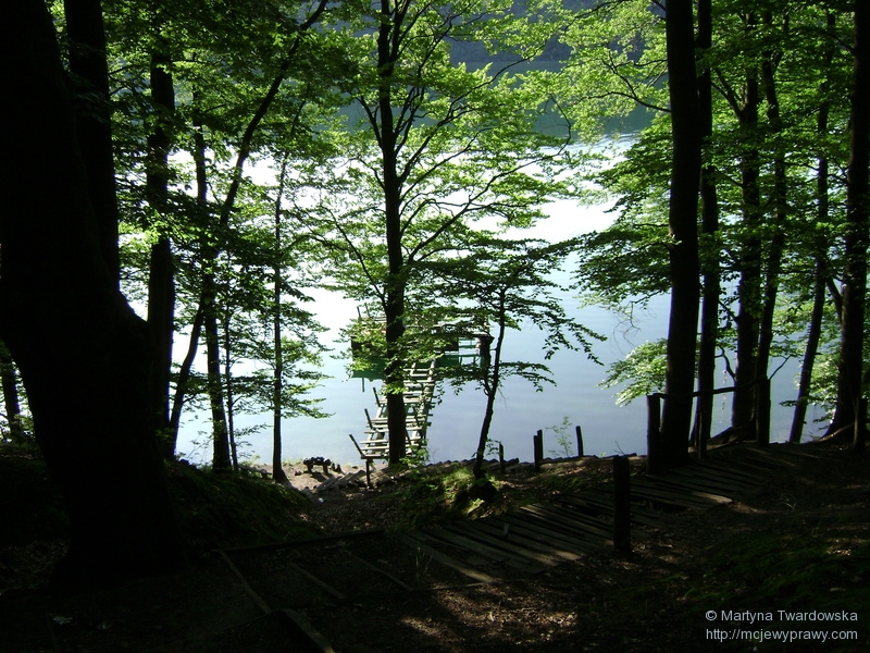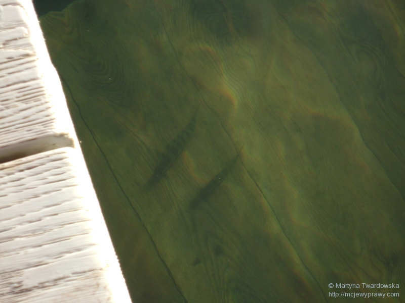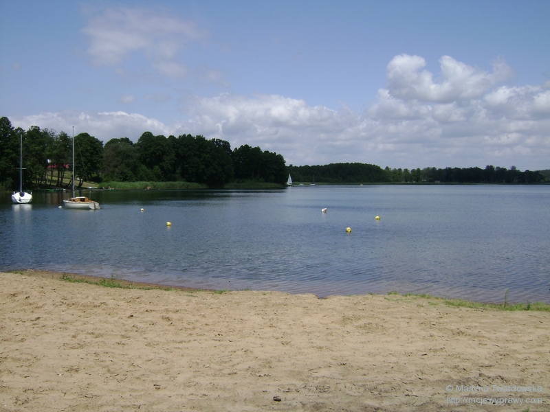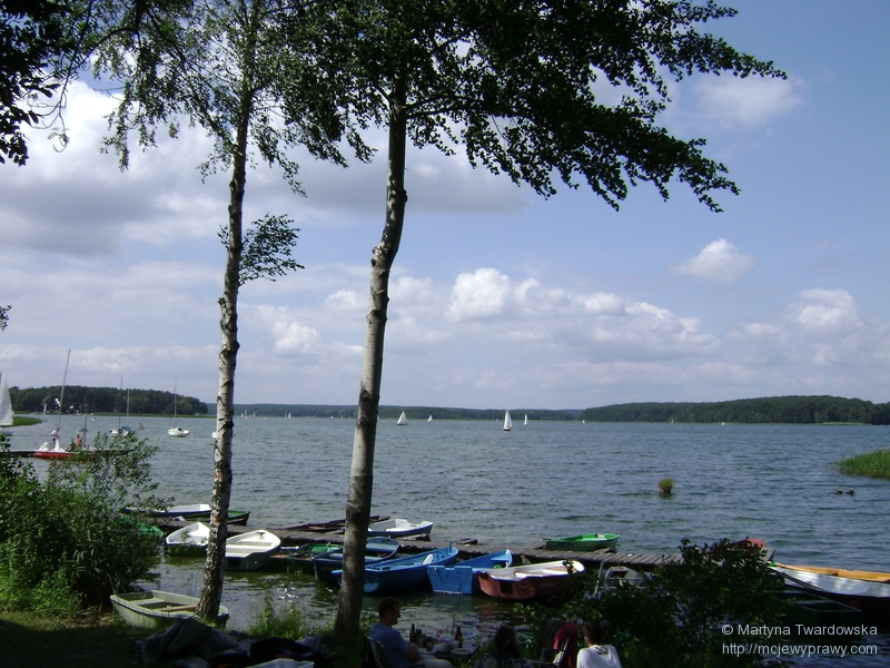 Usiedliśmy chwilę na przystani, by odpocząć -jezioro spodobało nam się na tyle, by je objechać wokół; tym bardziej, że wiódł tamtędy niebieski szlak, którym nigdy nie jechaliśmy. Zatem w drogę, mamy czas! ![]()