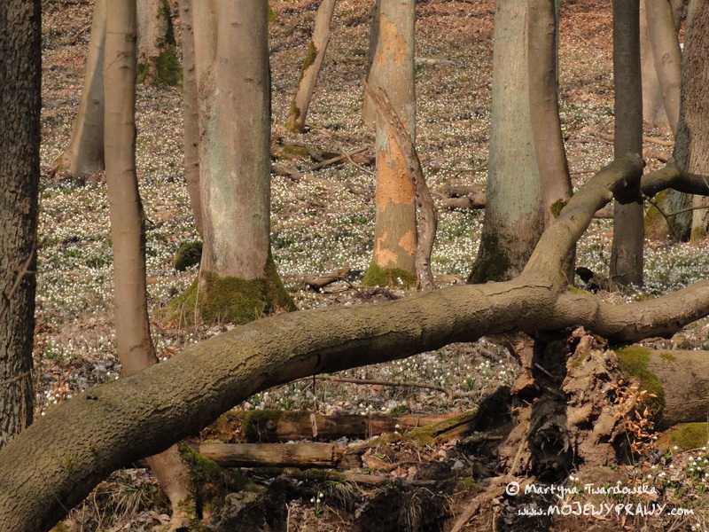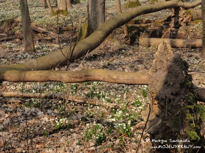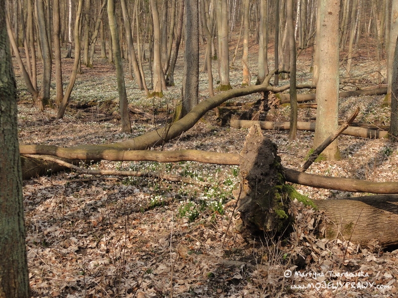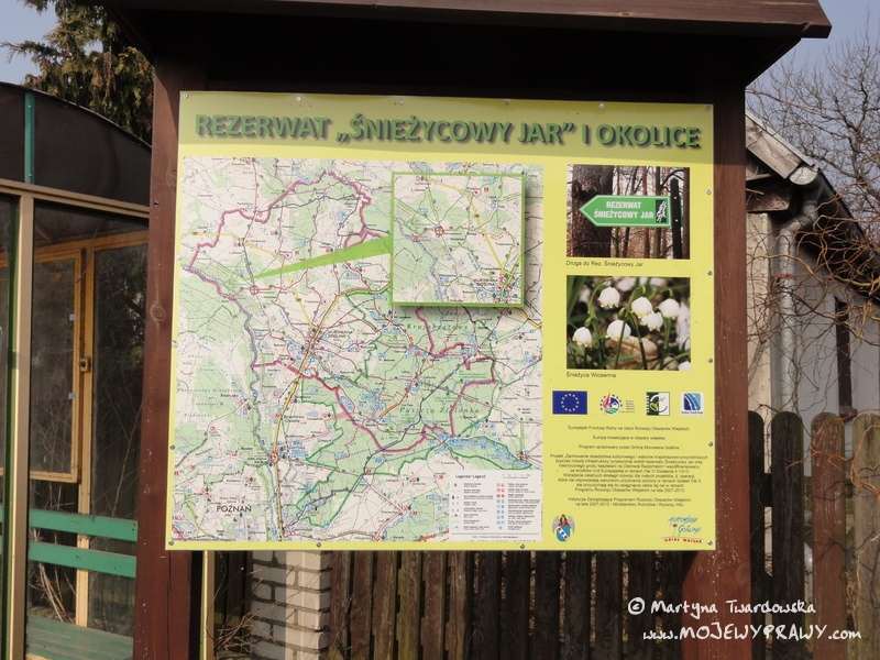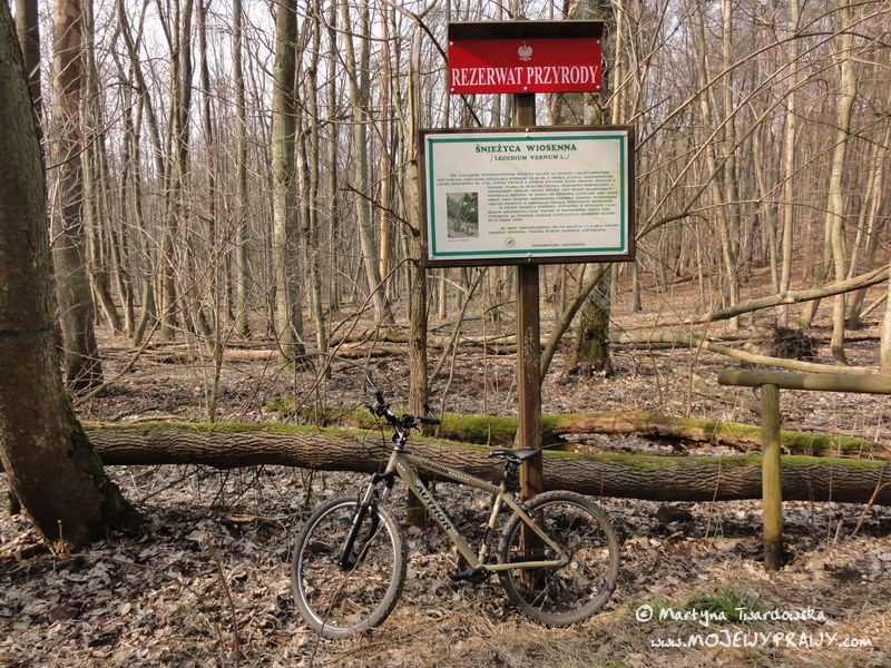 Marcowe słońce zachęcało do kolejnej rowerowej wycieczki, toteż postanowiłam wybrać się tym razem w okolice Poznania. Wybór padł na Rezerwat Śnieżycowy Jar (w gminie Murowana Goślina).