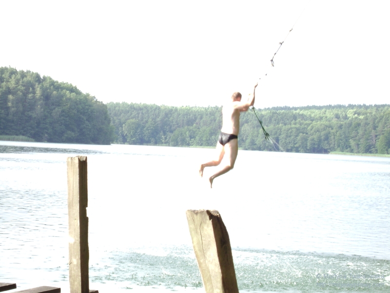 Idąc ścieżką wzdłuż jeziora -odkryliśmy przy okazji dodatkową atrakcję: linę do skoków do wody.