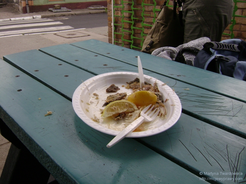 Będąc w Łagowie, tak jak i przed rokiem, trzeba było również spróbować ryby (konkretnie: lina, rok wcześniej: sielawy) z tutejszego jeziora… po której za chwilę nic nie zostało ![]()
